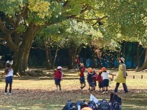 お天気も良く、みんなの大好きなドングリをたくさん拾ったり、ゲームをして