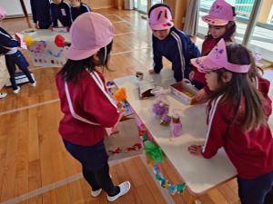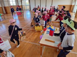 電子マネーなどのキャッシュレス決済が増えている今、現金歓迎ごとくお金を使ってのお店屋さんごっこで行いました。