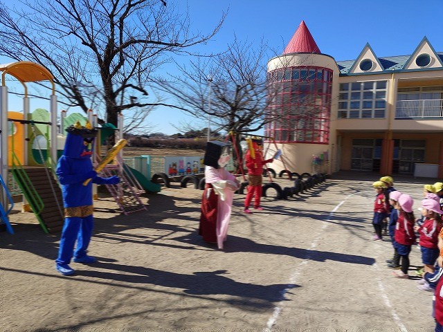 そこへ鬼がやってきて、まめまきがスタートし、子ども達はみんなで力を合わせ