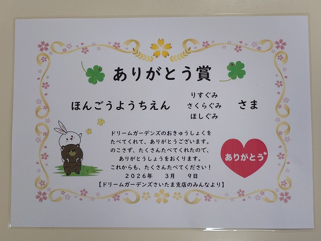体操の先生、英語の先生(ぱんだ教室さんと一緒に渡しました。)